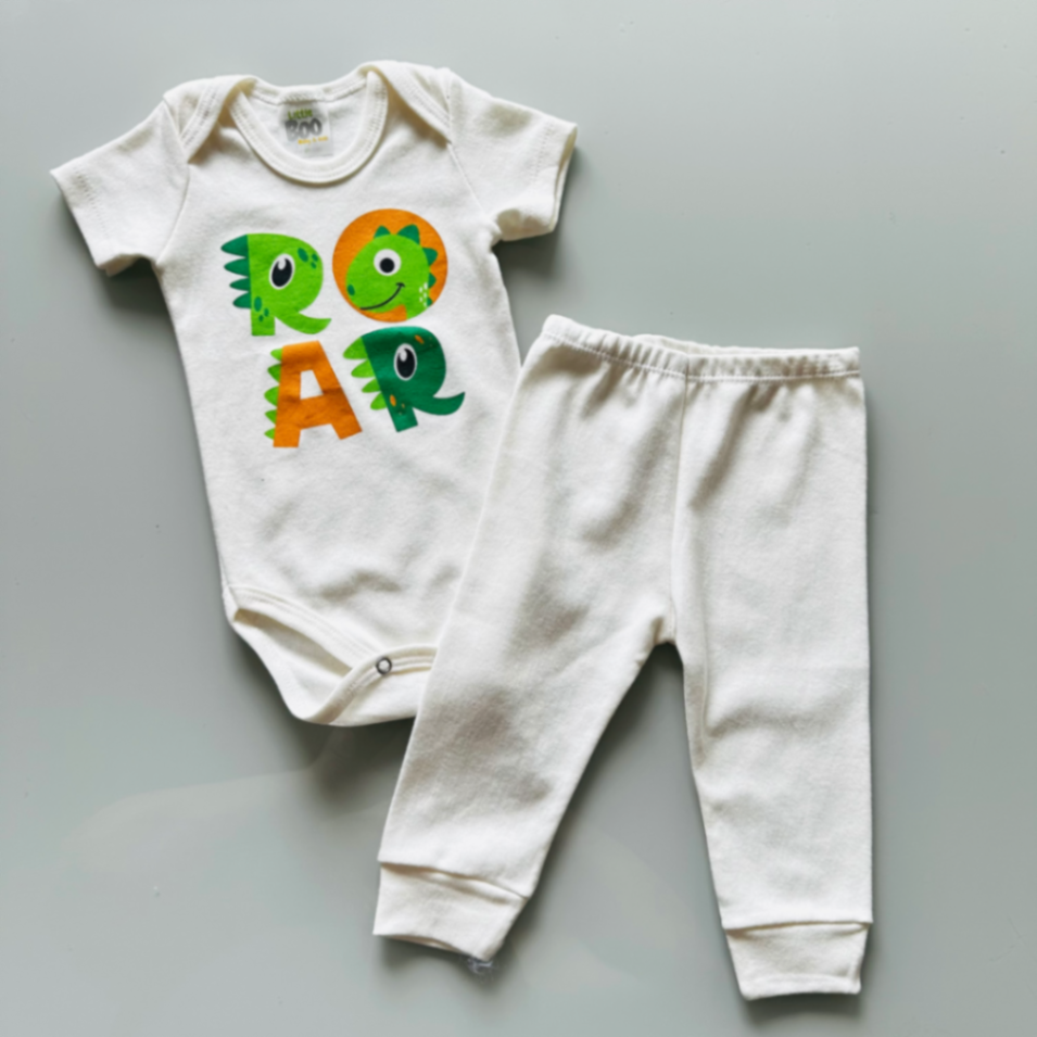 Body bebê divertido com estampas de dinossauros em cores vibrantes. Tecido 100% algodão, macio e respirável, ideal para pele sensível do bebê. Fecho em snaps na região inferior, troca rápida e prática. Conforto o dia inteiro e facilita o vestir. Perfeito para combinar com calças neutras ou looks casuais para todas as ocasiões.