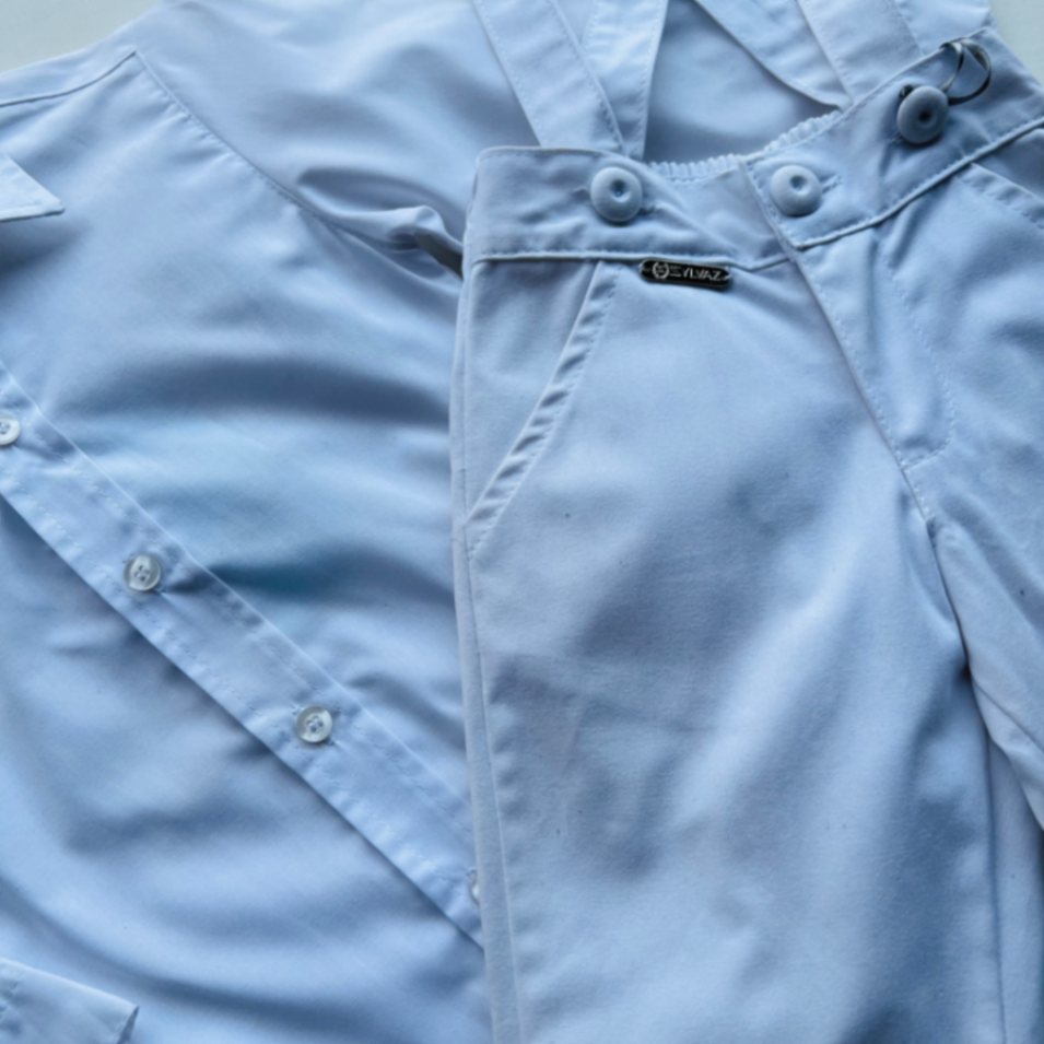 Conjunto social para bebê: camisa branca 100% algodão, suspensores ajustáveis e calça em tom neutro. Tecido macio, toque suave e caimento elegante para festas, batizados e fotos especiais. Fechamento simples para vestir com facilidade, com acabamento de qualidade que mantém a peça bonita por mais tempo. Perfeito para presentear e deixar o pequeno ainda mais fofo.