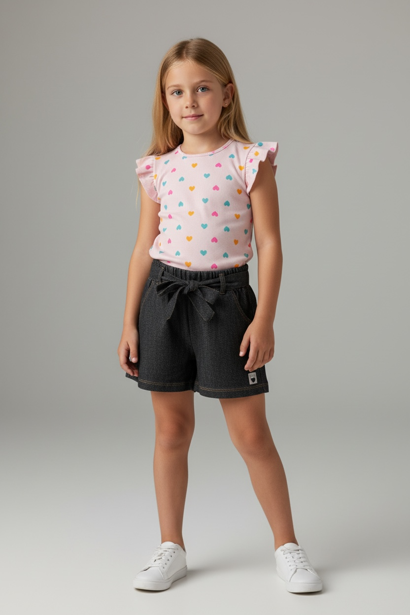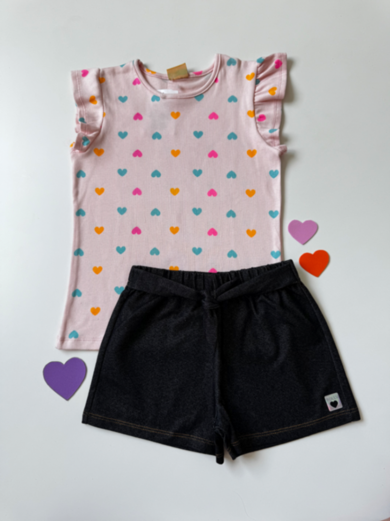 • Short: 67% algodão / 27% poliester / 6% elastano